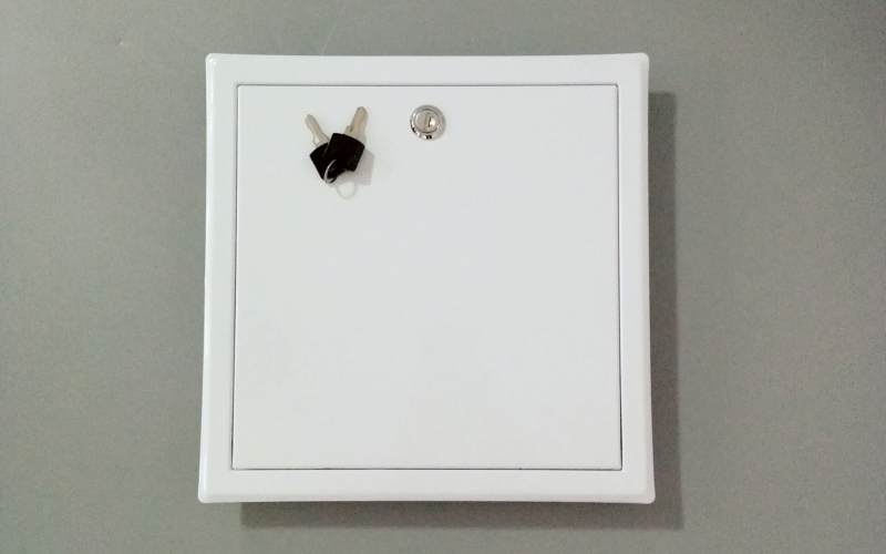 Tapa de inspección Skyhouse® alto tráfico con llave de seguridad es una excelente solución de registro para cielos y muros interiores ideal para zonas con alta afluencia de personas, o para registros de equipos complejos donde se requiere restringir el uso del acceso. Dado su materialidad y condición de cierre otorga un excelente comportamiento a impactos y seguridad para restringir el acceso.